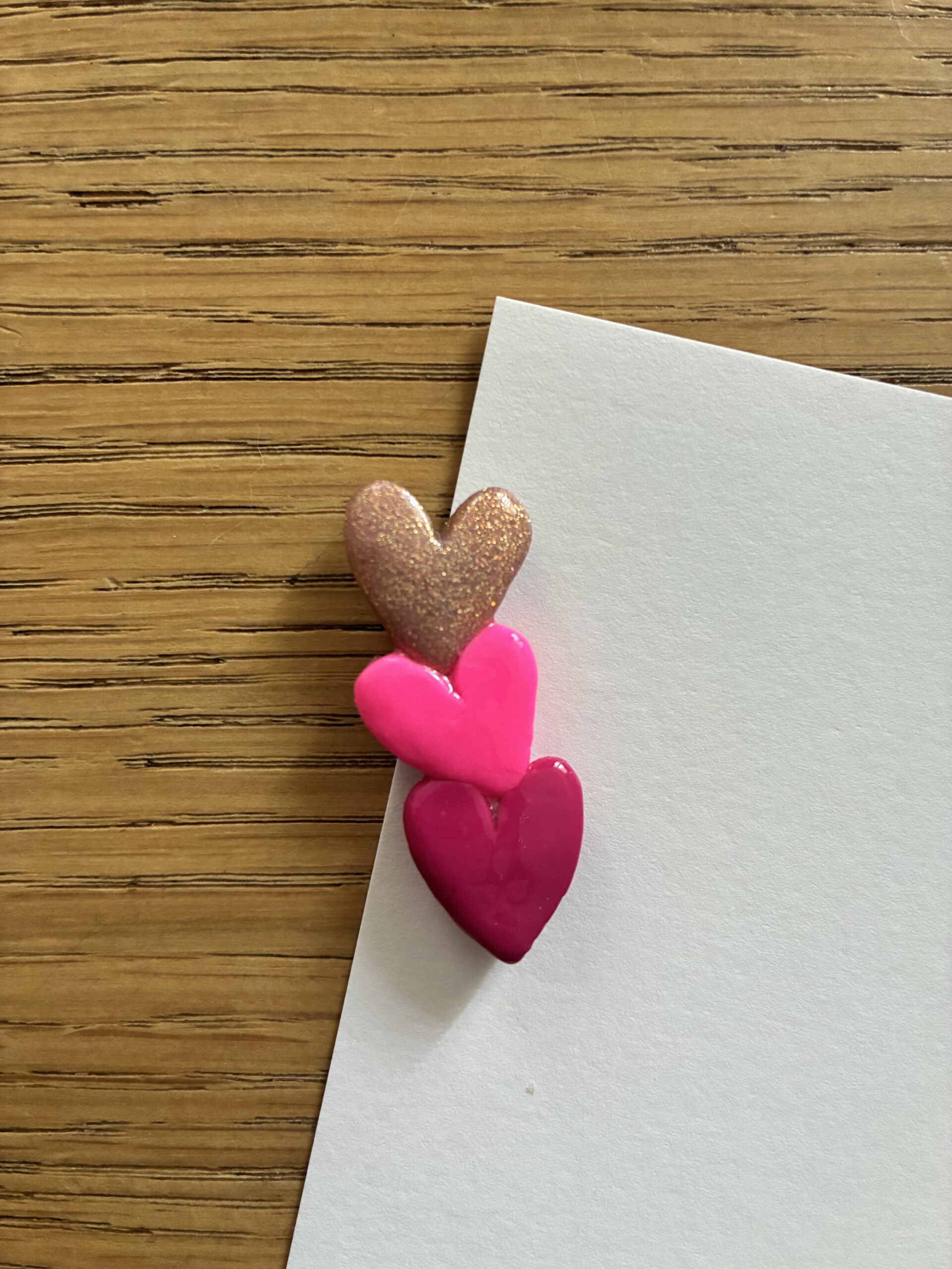 L’aimant “Coeurs par 3” est fabriqué à la main en pâte Fimo. Parfaitement imparfaite, chaque pièce est unique*.