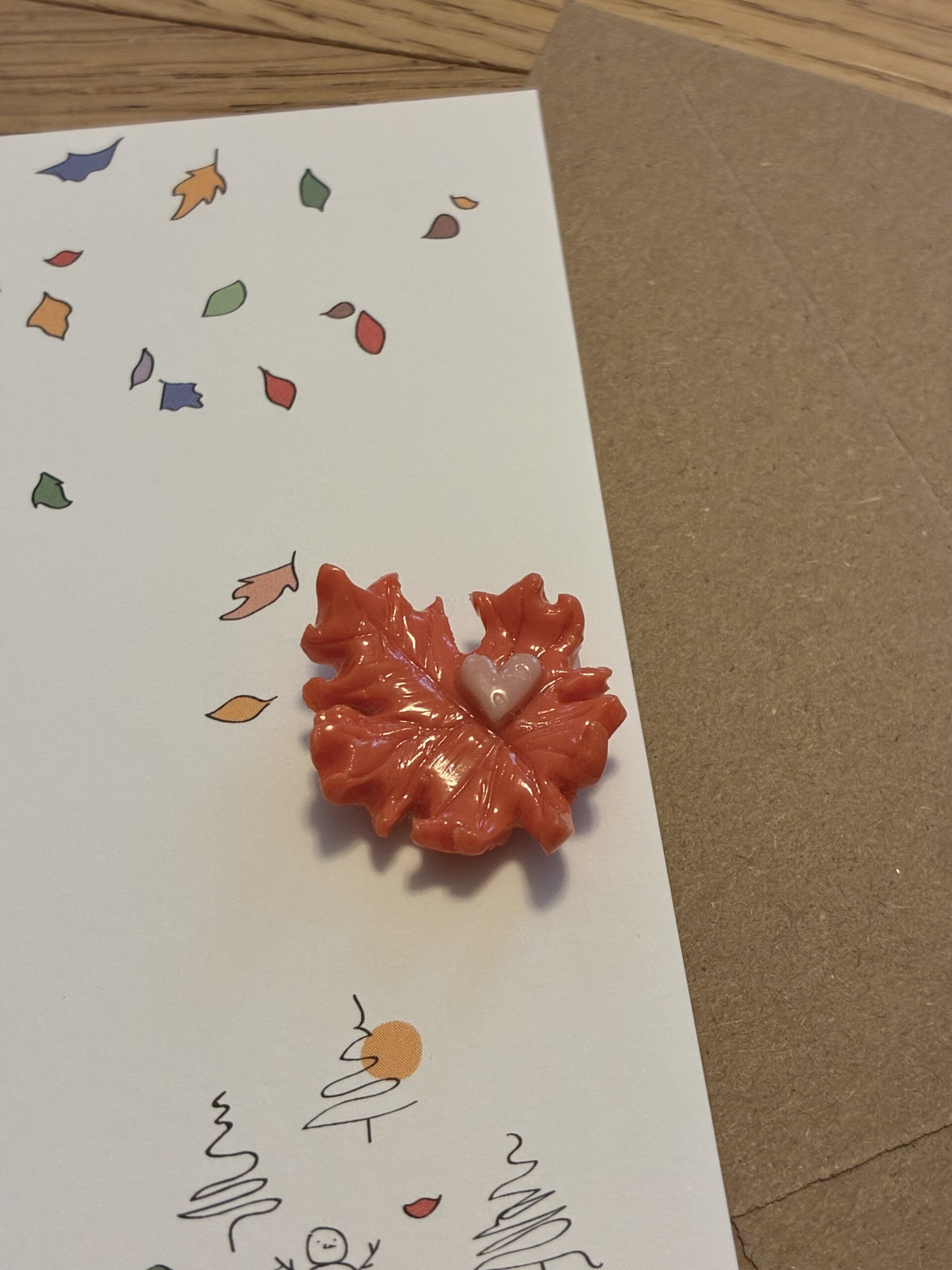 L’aimant “feuille d’érable” est fabriqué à la main en pâte Fimo. Parfaitement imparfaite, chaque pièce est unique*.