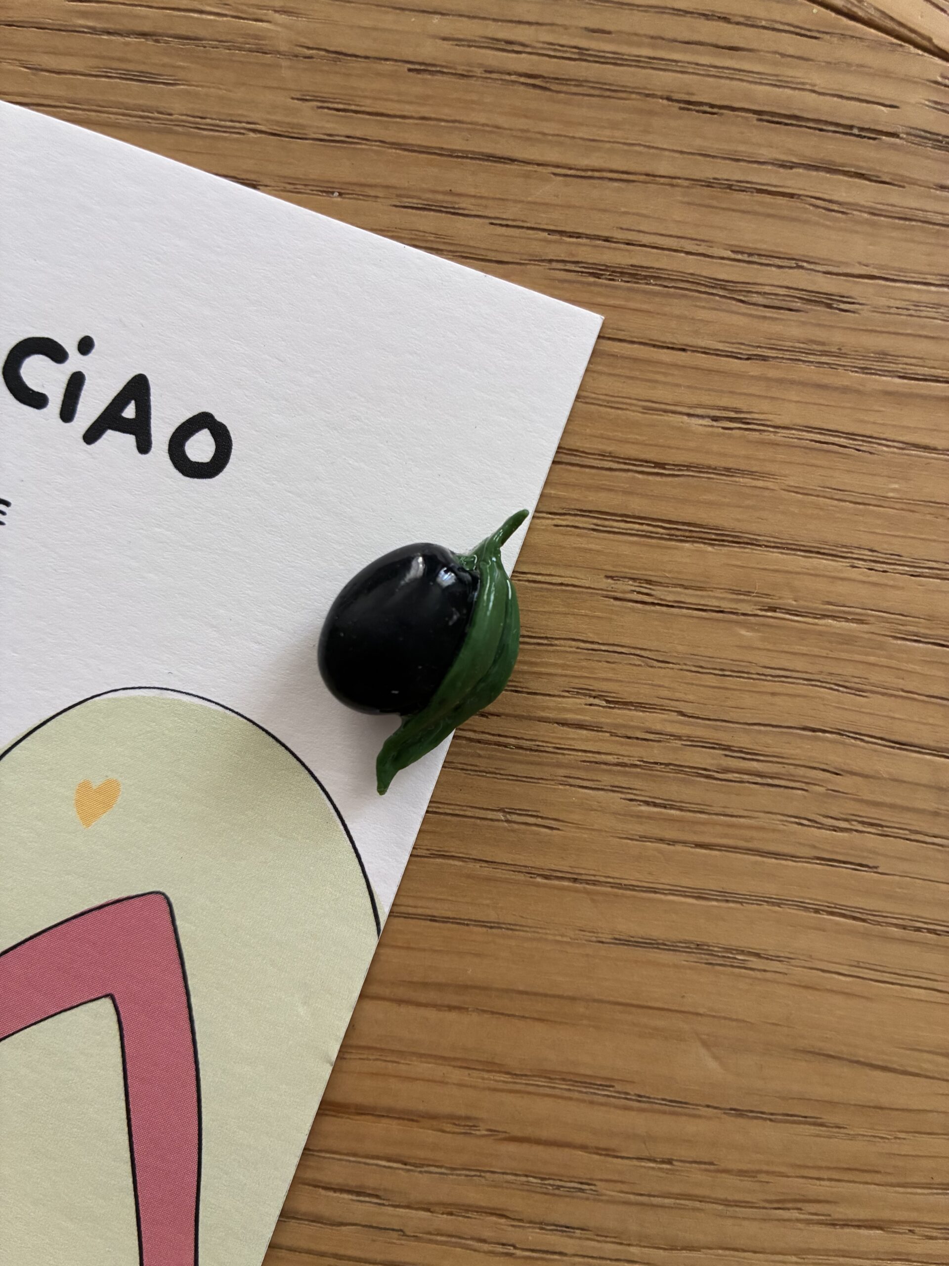 L’aimant “Olive” est fabriqué à la main en pâte Fimo. Parfaitement imparfaite, chaque pièce est unique*.