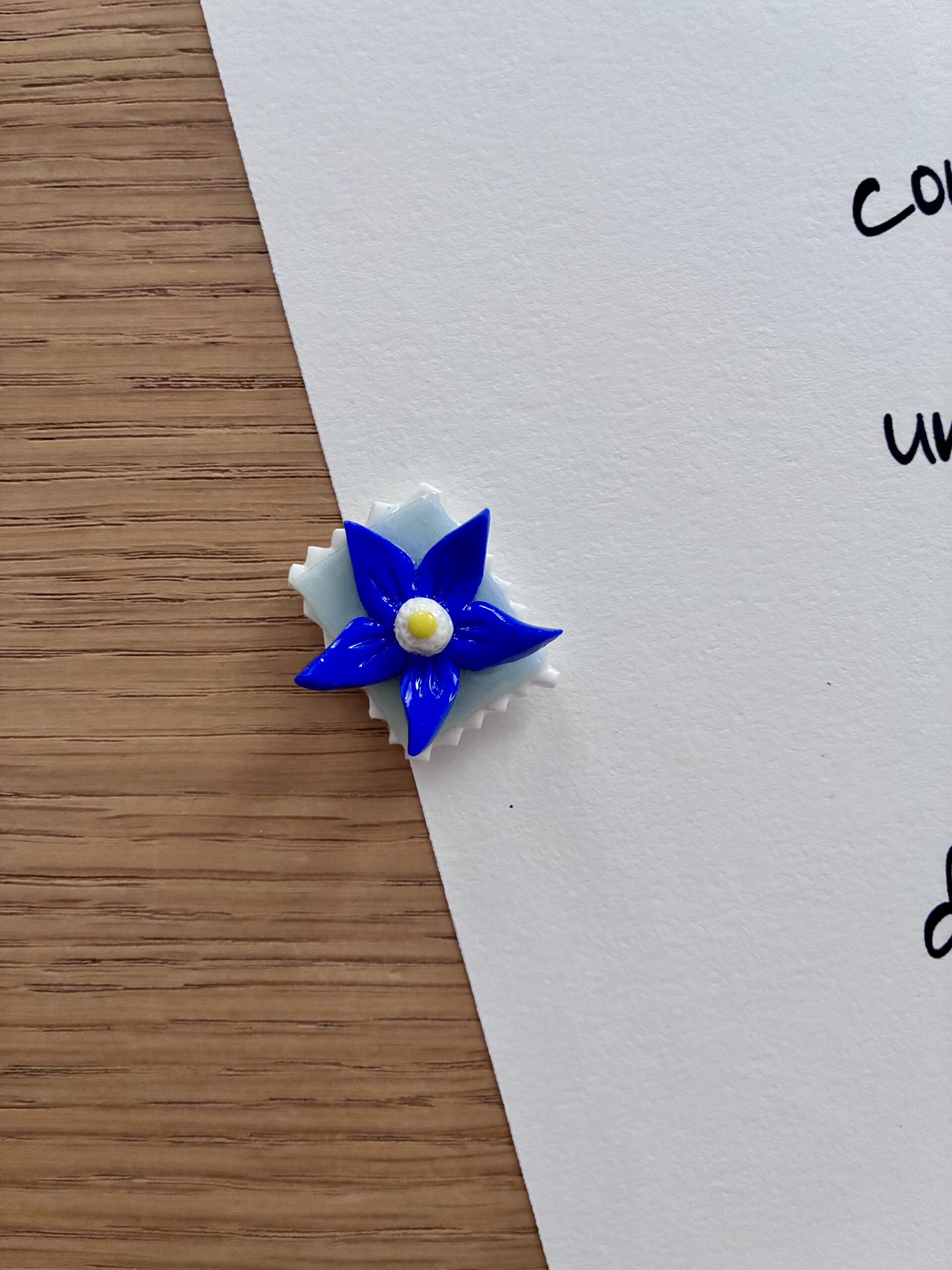 L’aimant Timbre “Gentiane bleue” est fabriqué à la main en pâte Fimo. Parfaitement imparfaite, chaque pièce est unique*.