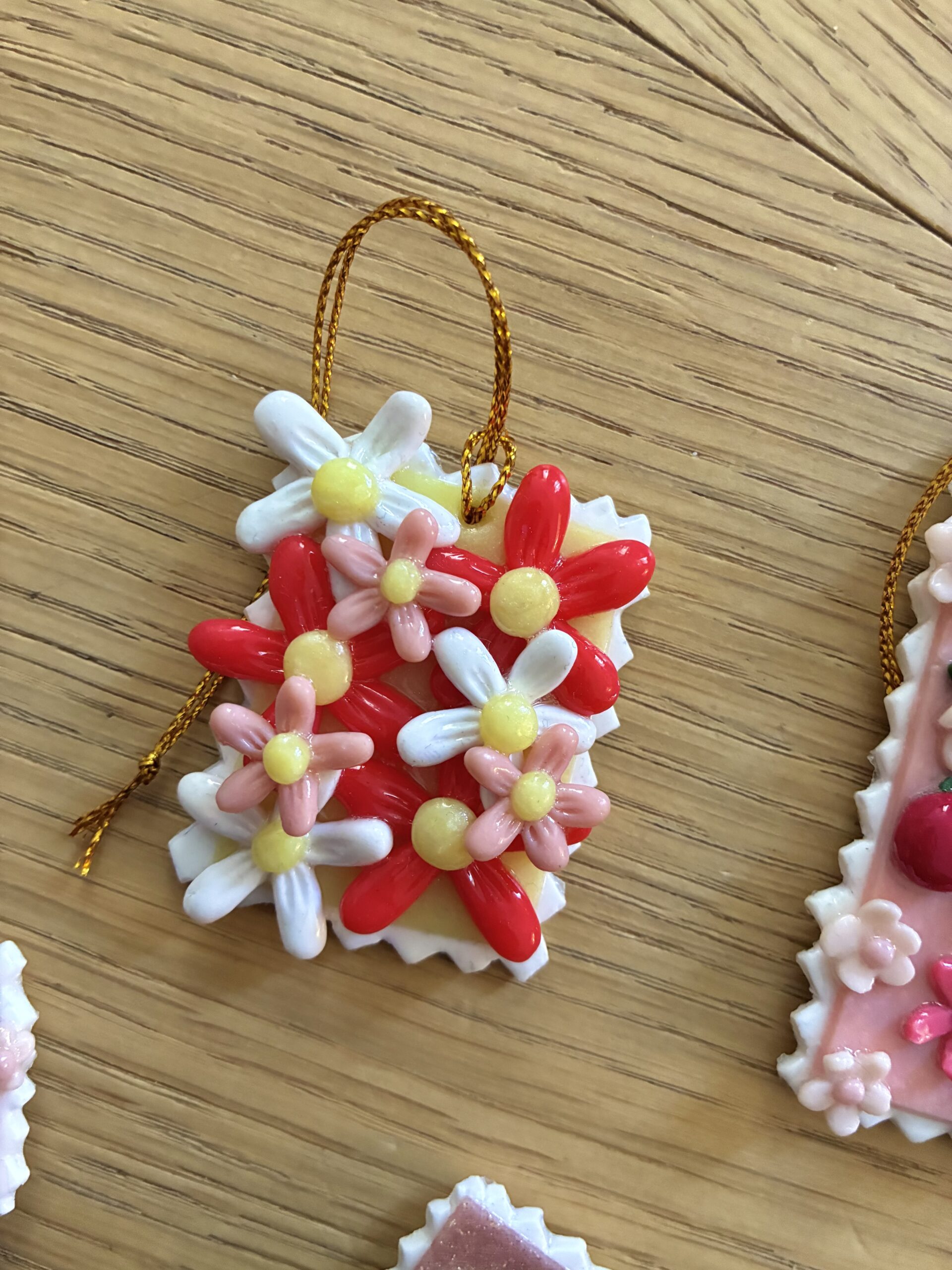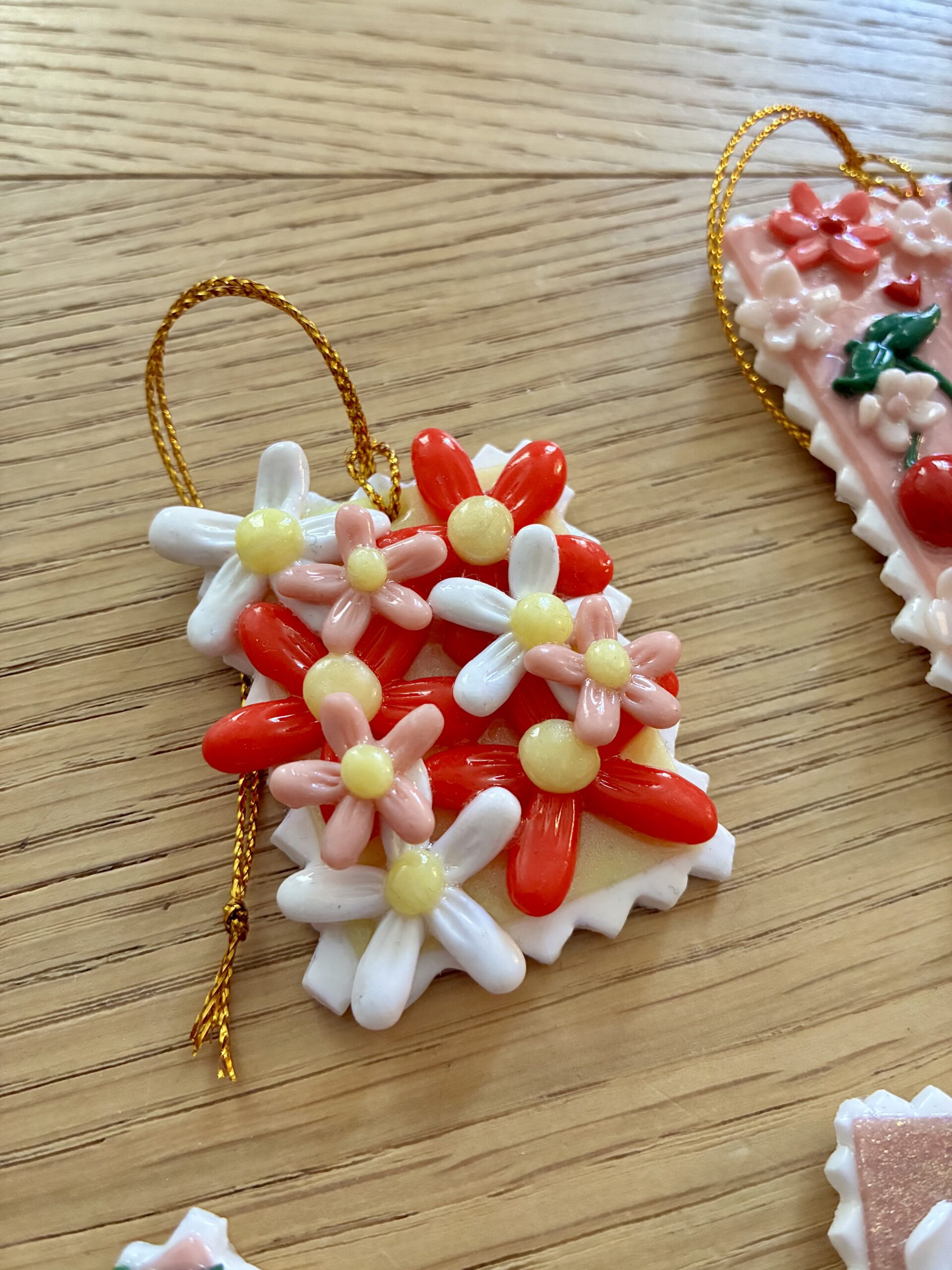 Chaque suspension est unique et n’existe qu’en un seul exemplaire. Elle est façonnée à la main à partir de pâte polymère.